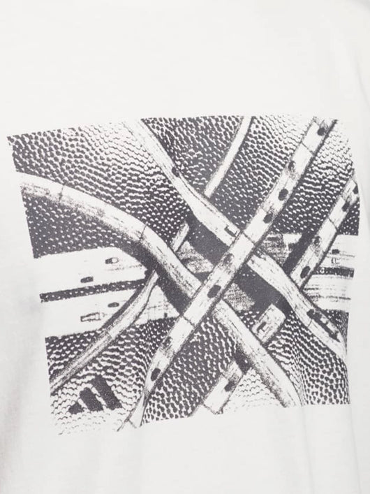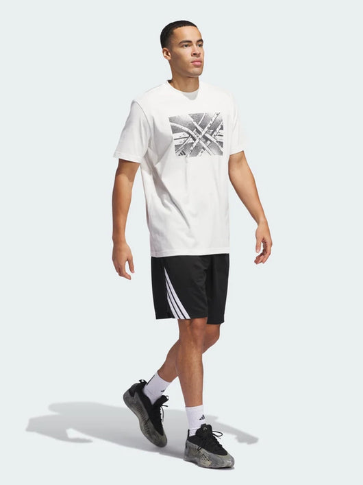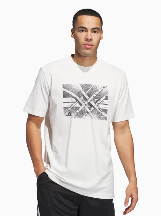 You're always thinking about hoops, and this t-shirt from adidas Basketball is a good way to let everybody know. It's made from cotton single jersey fabric and has a slightly looser fit for elevated comfort and easy movement. The zoomed-in image of a basketball on the front completes the look.