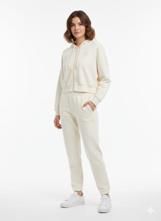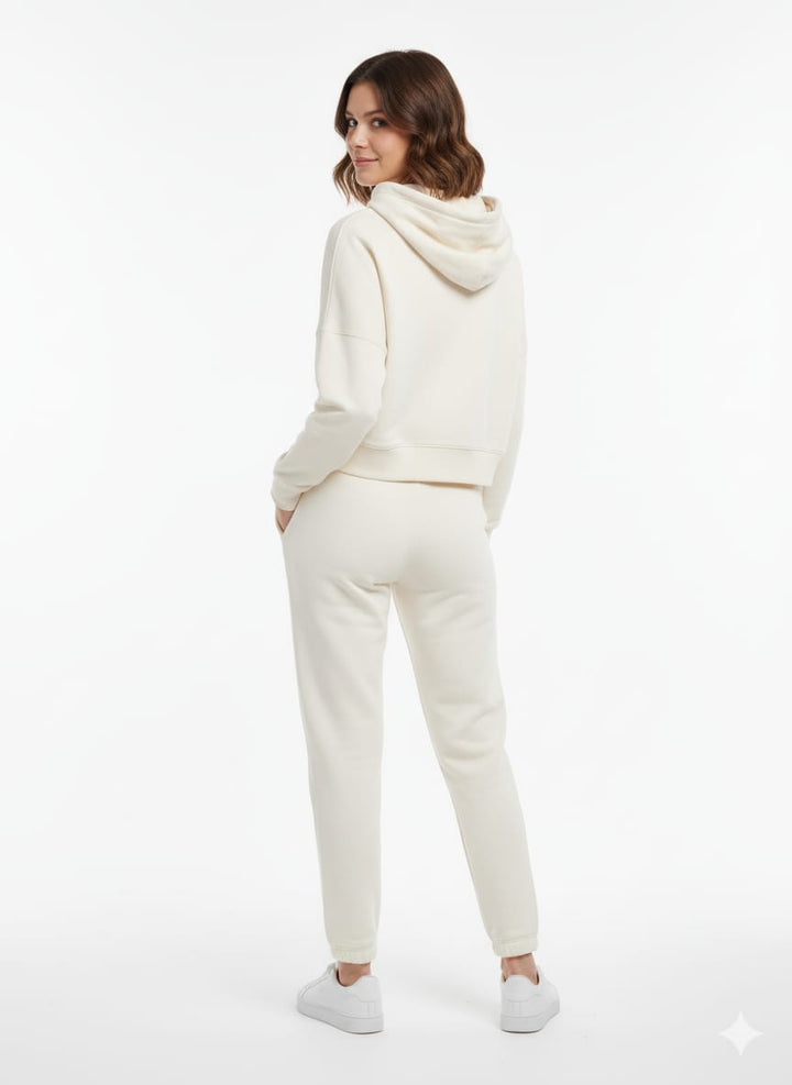 This short-length hoodie for women in off-white offers a sleek, modern silhouette perfect for layering or standalone wear. Crafted with quality materials, it ensures comfort and durability while maintaining a versatile, minimalist look. Its subtle color and tailored fit make it an ideal choice for both casual and athletic settings.