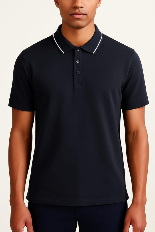 This AE cotton polo features a comfortable, breathable fabric ideal for everyday wear. Its contrasting collar profiles add a stylish touch, making it versatile for both casual and semi-formal occasions. Designed to provide a flattering fit, this black polo combines classic comfort with subtle detailing to enhance your wardrobe effortlessly.