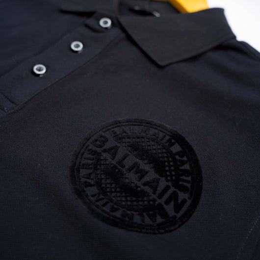 This B-M Embroidered Signature Polo in black features a sleek, round logo, combining timeless style with modern comfort. Its embroidered detail adds a refined touch, while the zipped design offers easy wear and a polished look. Perfect for casual or semi-formal occasions, this polo supports your versatile wardrobe needs.