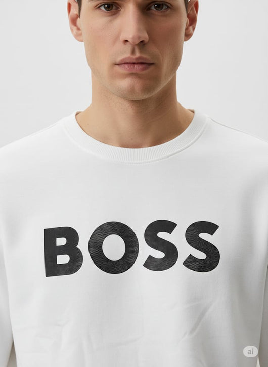 B.O.S.S Sandwich-logo sweatshirt in stretch cotton (Imported) (White)