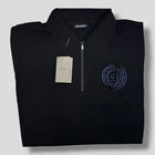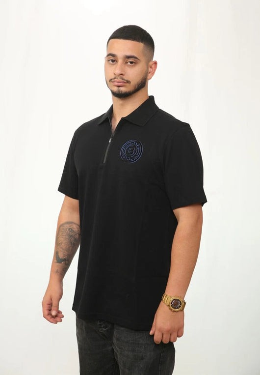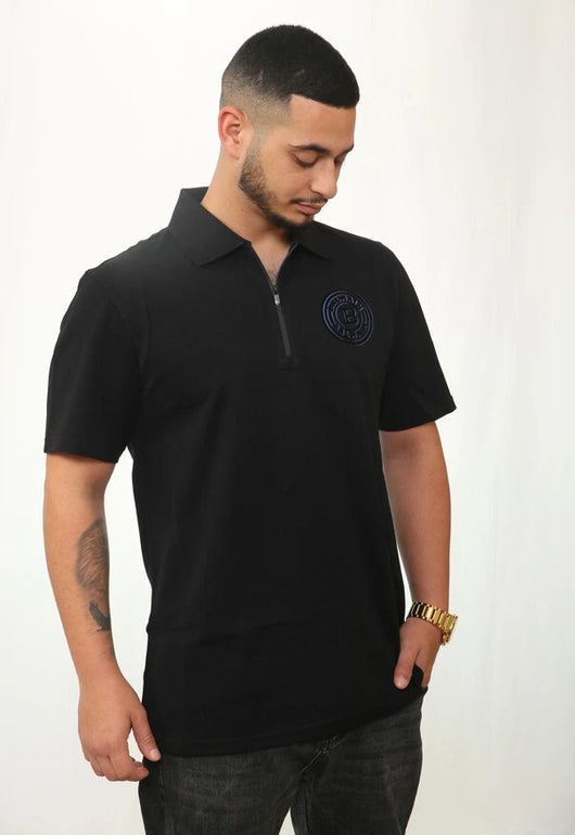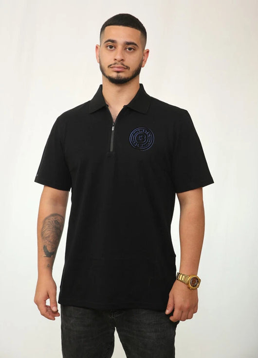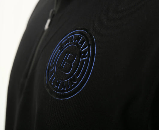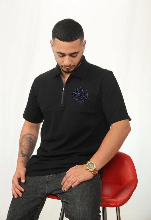B-M-Embroidered Signature Zipped Polo Black/Blue Logo