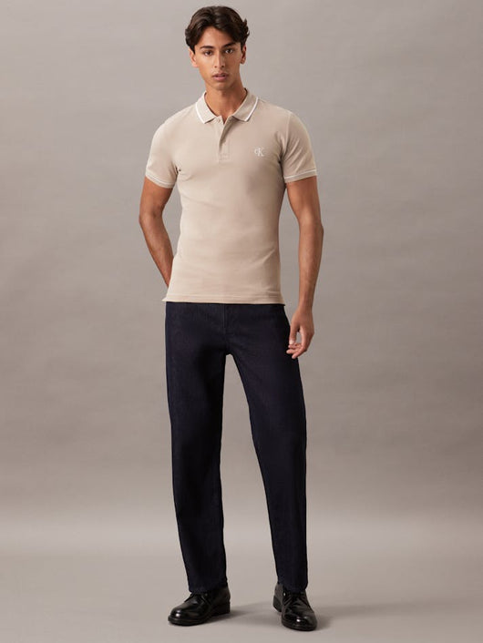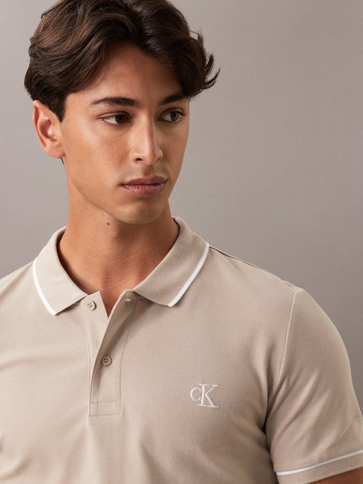 CK Slim Tipping Beige Polo Shirt
