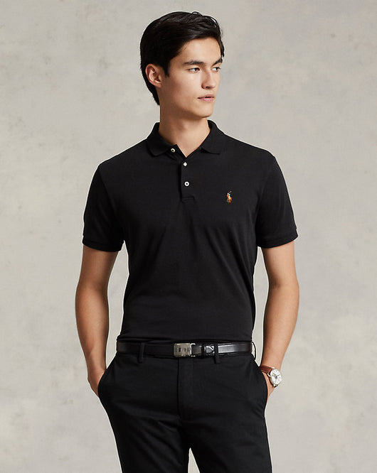 Custom Slim Fit Soft Cotton Polo Shirt BLACK/MULTI LOGO