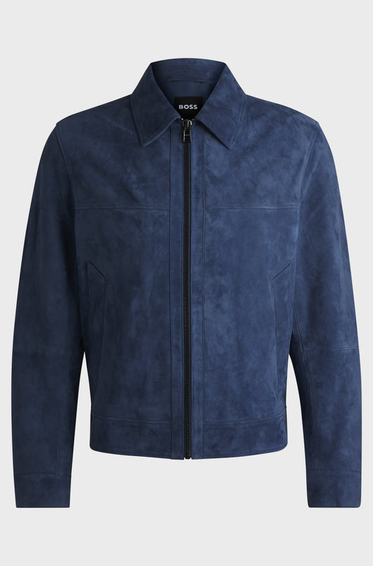 A regular-fit jacket with a zip front by BOSS Menswear. This piece is crafted in soft suede with smooth lining for comfort. We continuously look for more responsible ways to produce and finish our products. A minimum of 60% of the leather used to make this product has been sourced from certified tanneries.