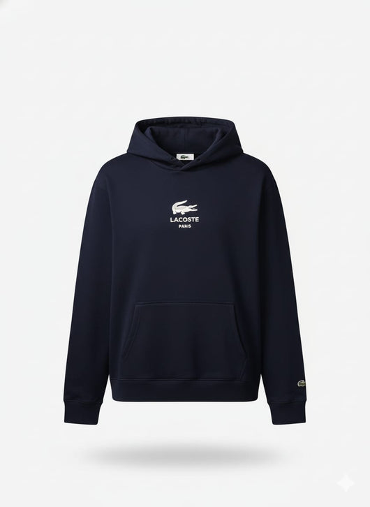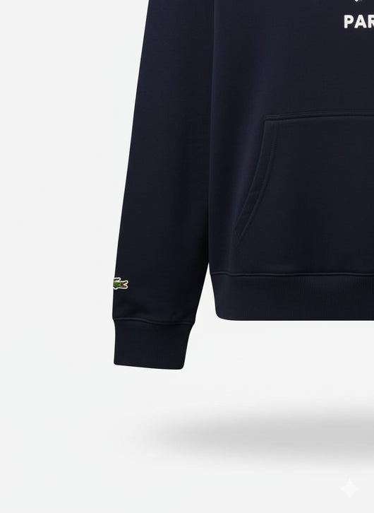 - Iconic Lacoste crocodile logo prominently displayed on chest