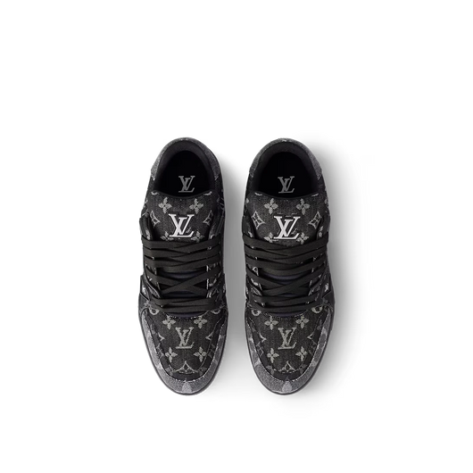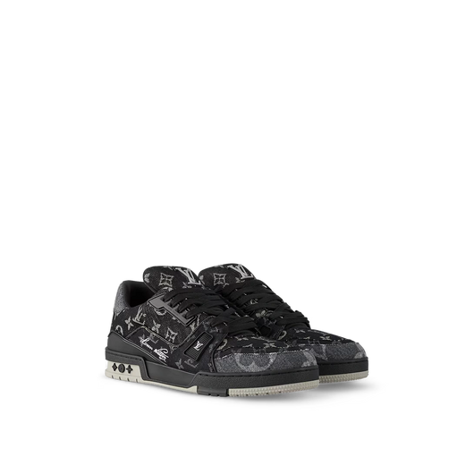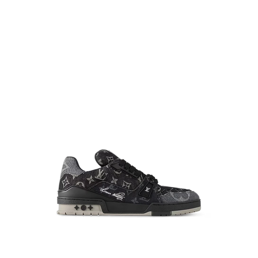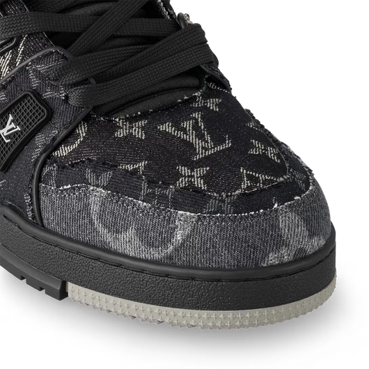 This version of the LV Trainer sneaker comes in a patchwork of Monogram denim with a refined play on color and scale. This iconic style, which was originally designed by Virgil Abloh, references vintage basketball sneakers. Its elaborately constructed upper is complemented by a bicolor rubber outsole.