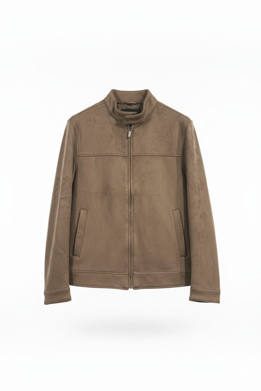 Crafted from supple suede, this light brown jacket combines refined elegance with practical functionality. The premium high-neck neckline provides superior coverage and a sophisticated silhouette, while strategically placed pockets offer convenient storage without compromising the streamlined design. The buttery-soft suede develops a beautiful patina over time, ensuring this piece becomes more distinctive with wear. An investment in timeless style that transitions seamlessly from casual to elevated occasions.
