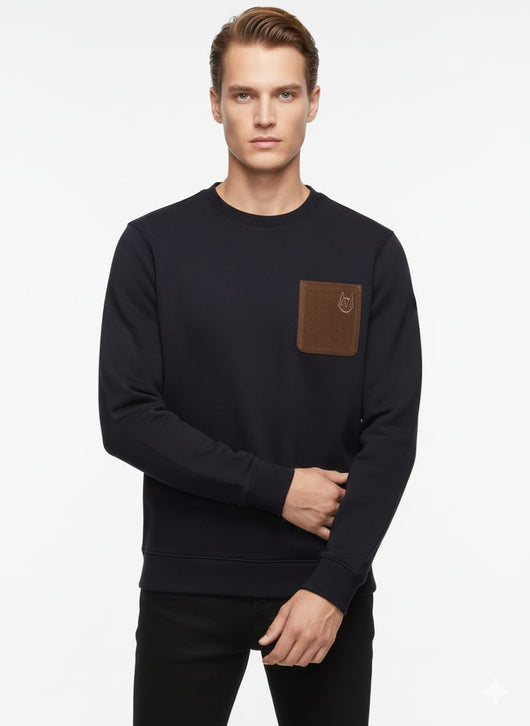 A luxurious take on an essential, this sweatshirt is crafted from a cotton and cashmere blend. Adding texture, an Alcantara® chest pocket completes the design. The crew neck can easily be layered over a crisp shirt or with elevated slacks.