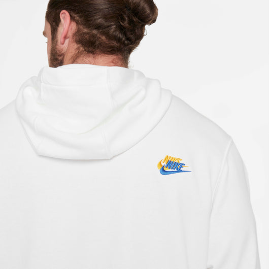 The Nike Sportswear Essentials+ Hoodie creates a fresh look with the unexpected placement of heritage Futura graphics. Embroidered on soft brushed French terry, these scattered graphics add texture and a variety of colours to help accent your favourite sneakers.