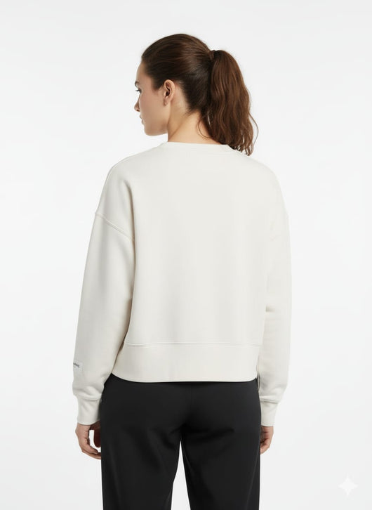 This NK Women's off white Sweatshirt combines comfort and style with its soft fabric and classic off-white color. Designed for a relaxed fit, it offers warmth and flexibility, making it ideal for casual outings or cozy indoor wear. Durable and easy to care for, this sweatshirt ensures lasting quality and a timeless look that complements any wardrobe.