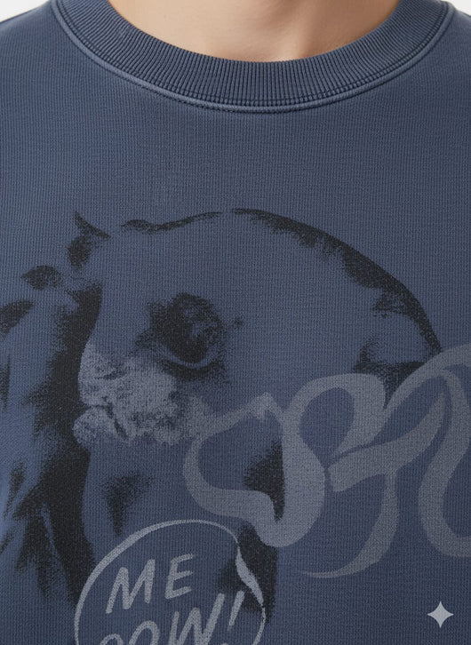This blue sweatshirt features a distinctive cat print alongside the STWD logo, combining casual style with a playful edge. Crafted for comfortable wear, it offers a relaxed fit suitable for everyday use. Perfect for layering, this piece adds unique character to your wardrobe while maintaining a polished, expert-approved look.