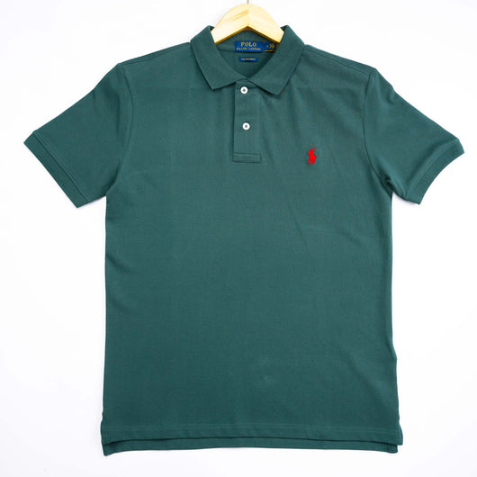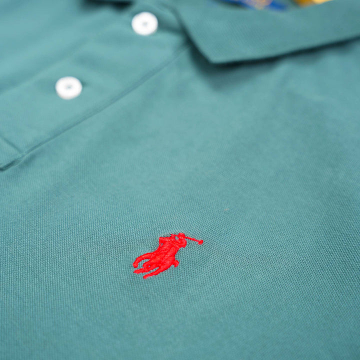 This Ralph Lauren -Custom Slim Fit shirt in green features a striking red logo that adds a bold touch to its sleek design. Tailored to fit closely, it offers a modern silhouette that complements your shape while ensuring comfort. Perfect for those seeking style without sacrificing ease, this shirt effortlessly elevates your everyday look.