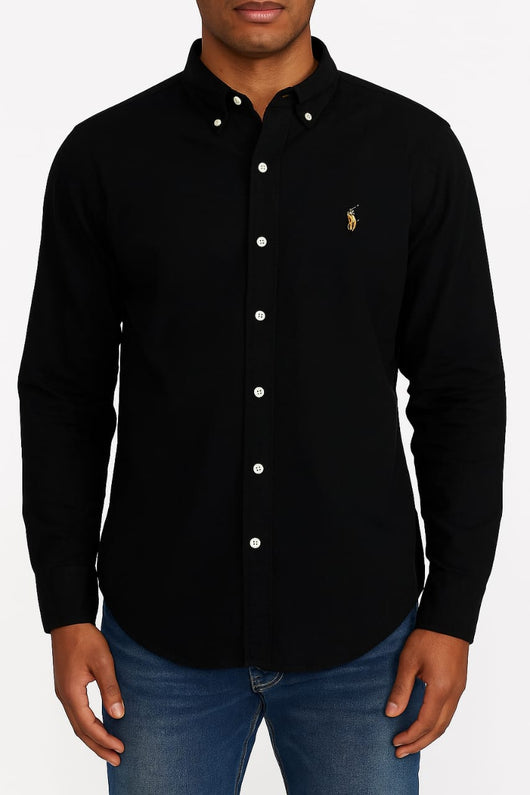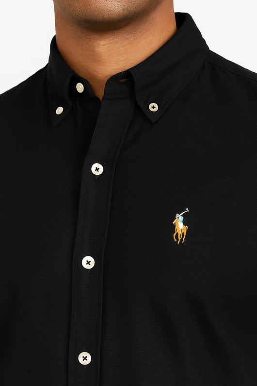 The RL Knit Oxford Shirt combines classic style with comfortable knit fabric, offering a versatile wardrobe essential. Its breathable material ensures all-day comfort, while the timeless black color pairs effortlessly with any outfit. Perfect for both casual and semi-formal occasions, this shirt supports your need for reliable, stylish wear.