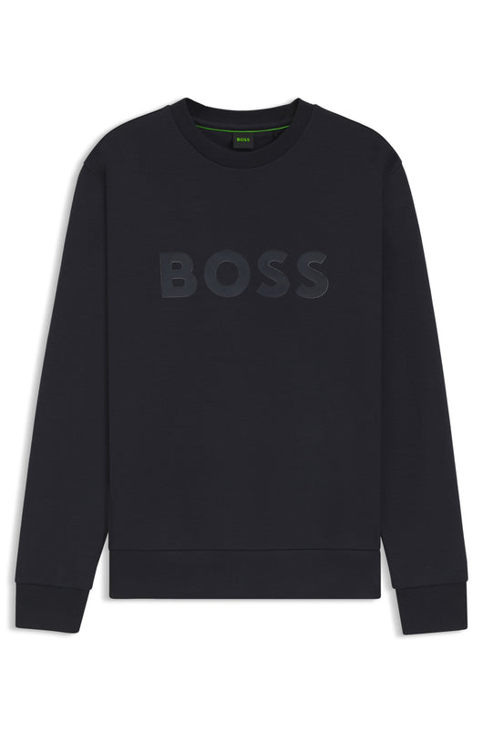 B.O.S.S Sandwich-logo sweatshirt in stretch cotton (Imported) (Black)