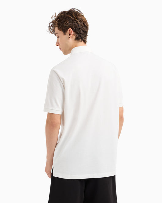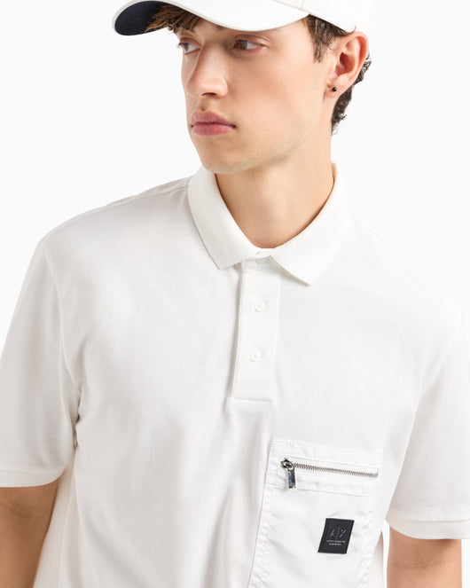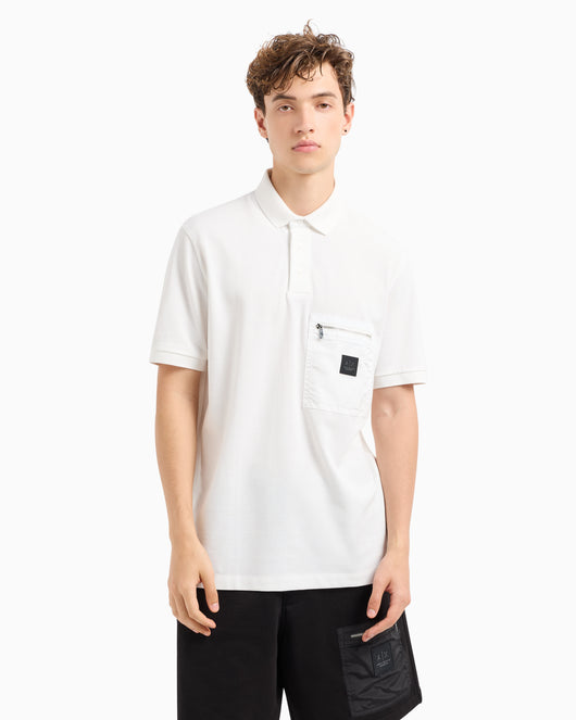 The polo is interpreted with a more contemporary and current style thanks to the bold details. This polo made of pure cotton piquet has a maxi-pocket on the chest with zip and an oversized fit. The short sleeves and the buttoned collar complete the design.