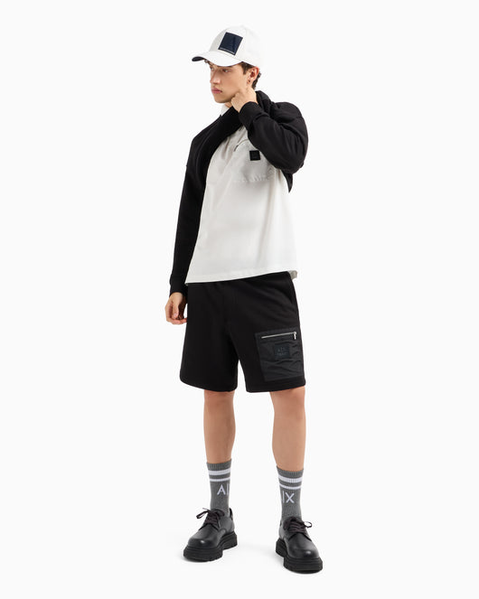 Main fabric: 100% cotton; second fabric: 100% polyester; rib details: 99% cotton, 1% elastane