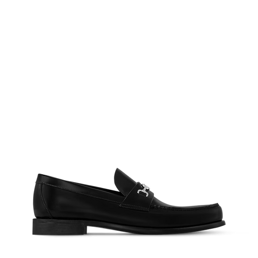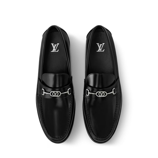 The Major loafer is a versatile and timeless style in glazed calf leather. This slip-on model is notable for its hand-stitched vamp, which is signed with a silver-toned LV Initials accessory inspired by the House archives. It is finished with a durable leather and rubber outsole.