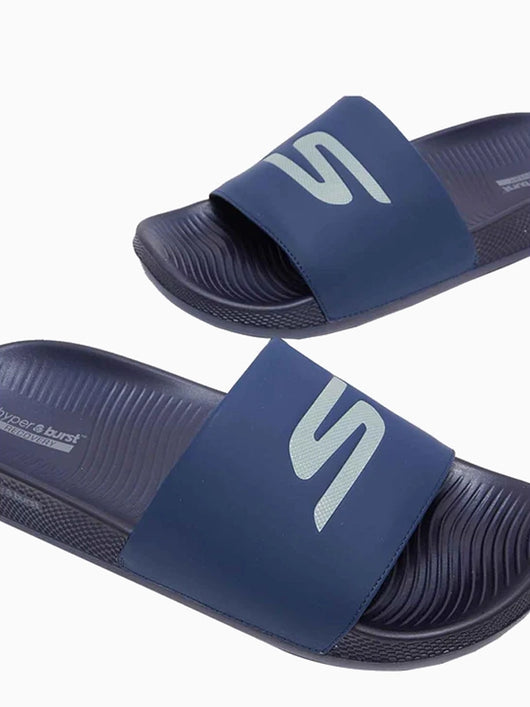 Post-run recovery gets upgraded with more comfort and athletic style in the Skechers Hyper Slide - Deriver sandal. Features a smooth synthetic upper with HYPER BURST cushioned midsole and Goodyear performance outsole.