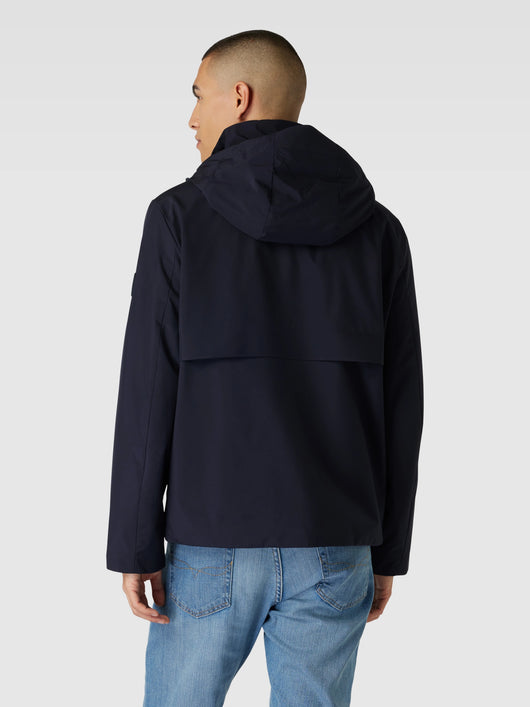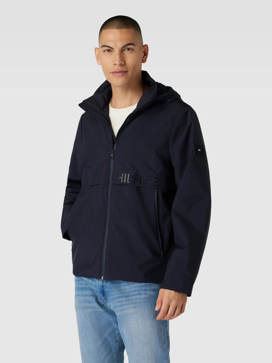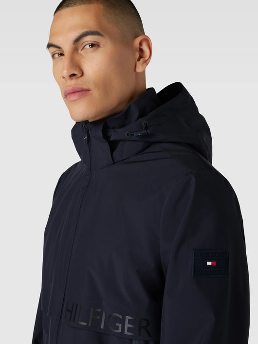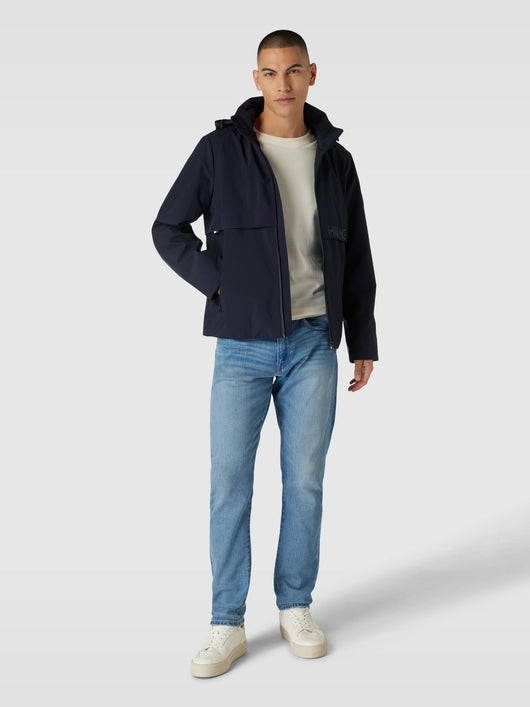 This men's jacket from Tommy Jeans, in a regular fit and solid color design, features a practical stand-up collar and integrated hood. Side pockets offer storage for essentials. A subtle logo detail stylishly completes the look.
