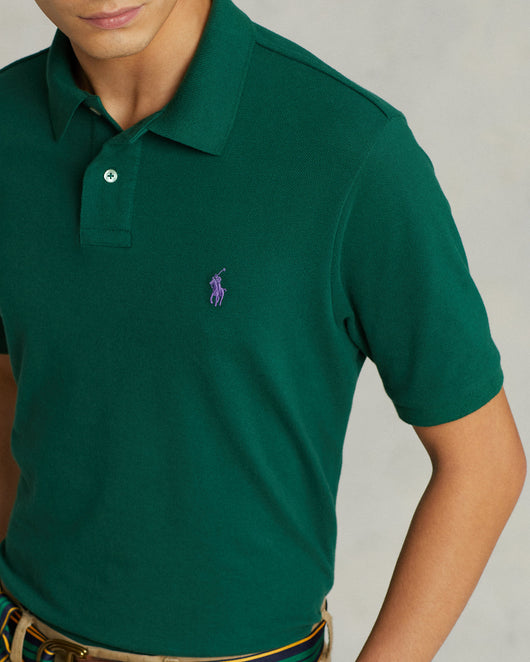 An American style standard since 1972, the Polo shirt has been imitated but never matched. Over the decades, Ralph Lauren has re-imagined his signature style in a wide array of colours and fits, yet all retain the quality and attention to detail of the iconic original. This trim version is made from our highly breathable cotton mesh, which offers a textured look and a soft feel.
