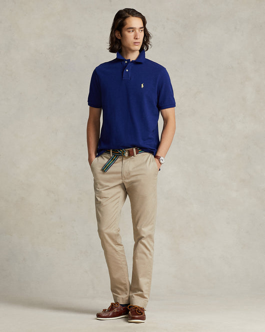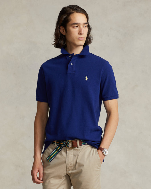 An American style standard since 1972, the Polo shirt has been imitated but never matched. Over the decades, Ralph Lauren has re-imagined his signature style in a wide array of colours and fits, yet all retain the quality and attention to detail of the iconic original. This trim version is made from our highly breathable cotton mesh, which offers a textured look and a soft feel.
