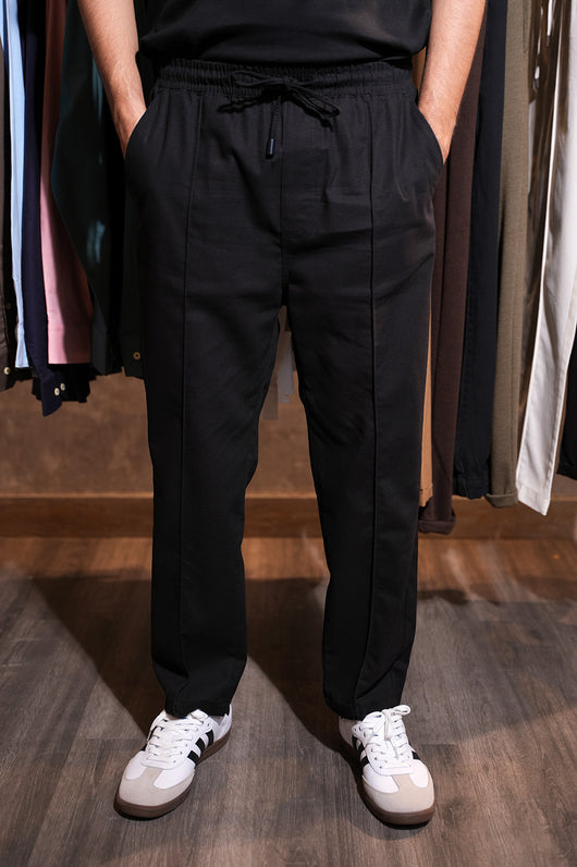 Z.R Linen Cotton Pleated Trouser ( Black )