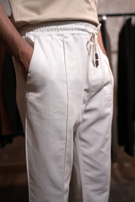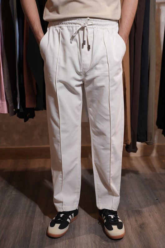 Z.R Linen Cotton Pleated Trouser ( White )