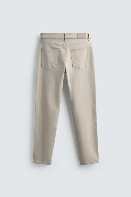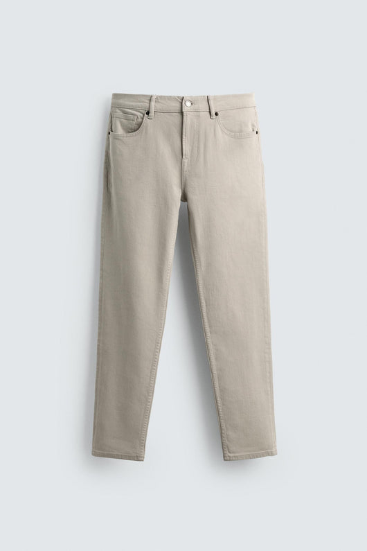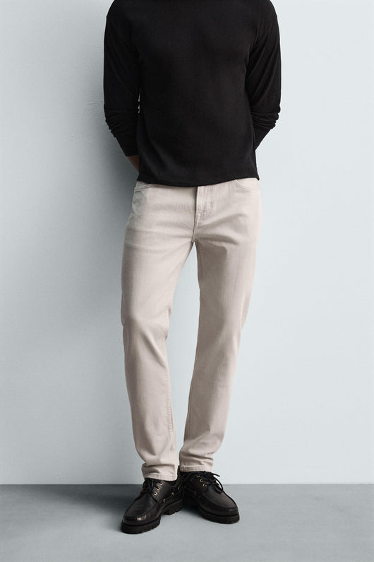 Slim fit jeans. Five pockets. Washed effect. Front zip and button closure.